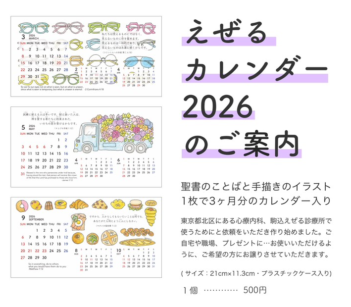 - 「2026年えぜるカレンダー」入荷しました(予約可)。