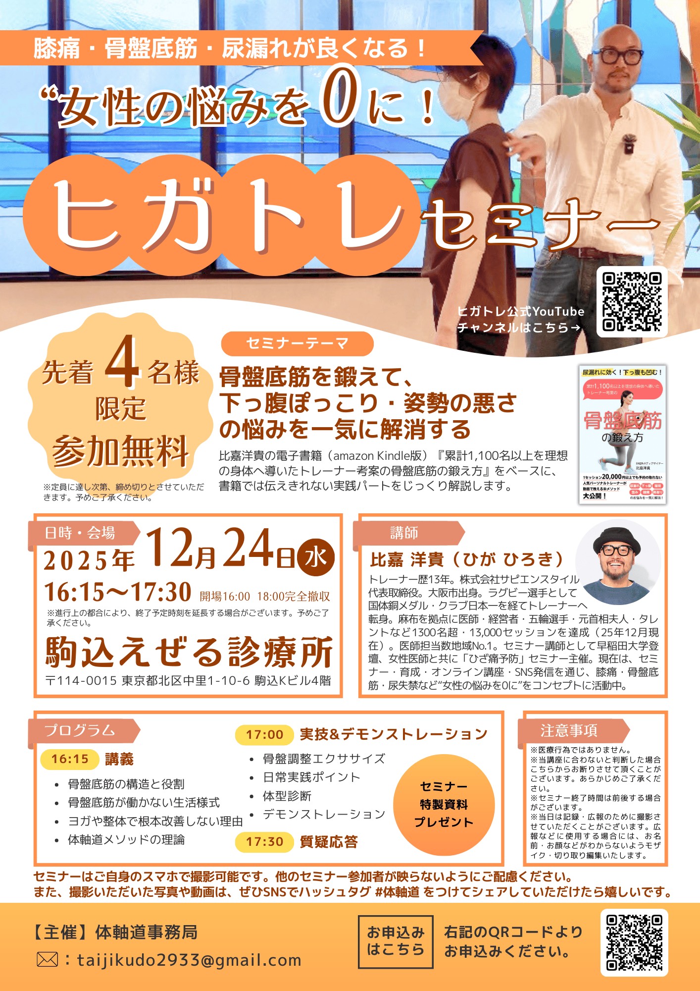 - 【12月24日】「体軸道事務局主催セミナー(事前申込制)」が開かれます。